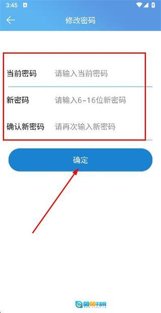 在密码修改页面输入当前密码、新密码等信息后,点击确认按钮即可完成密码修改操作。