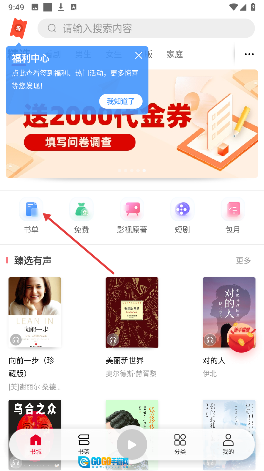 进入书城点击【书单】,浏览专题集锦内容。