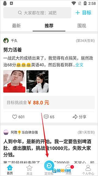 打开达目标,点击底部的定目标