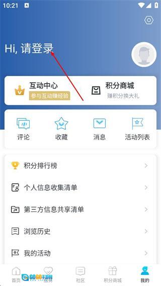 在个人中心页面,点击“Hi,请登录”区域,即可进入登录选择页面。