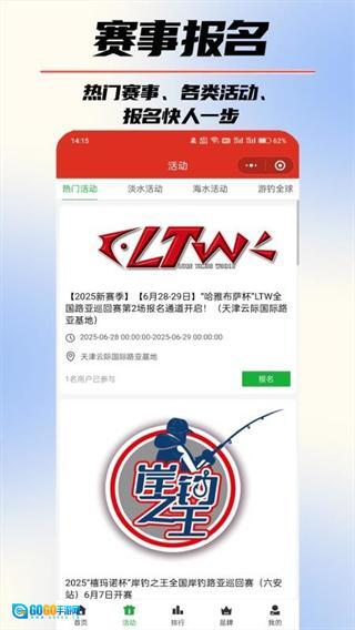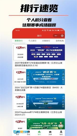 从低门槛的城市赛事到专业级别的全国锦标赛,覆盖了各个层级的路亚赛事,既能满足竞技钓手的参赛需求,也能契合普通爱好者的观赛兴趣,赛事相关资讯一应俱全,毫无遗漏。