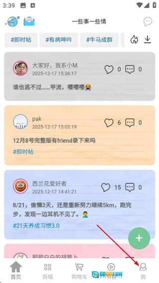 在“一些事一些情”首页,点击底部的“我”选项,即可进入登录页面。