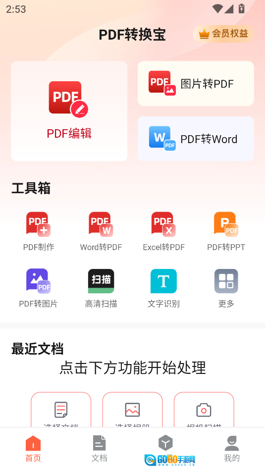 首页设有PDF编辑、PDF转Word等多种常用功能的快捷入口