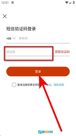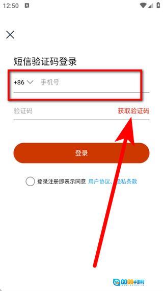 在登录页面,输入手机号,点击获取验证码。