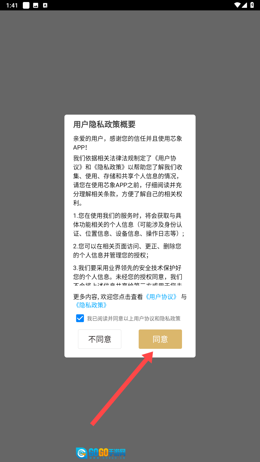 进入应用后,点击【同意】