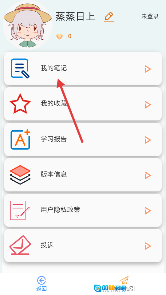 在个人中心页,点【我的笔记】,进入我的笔记页。