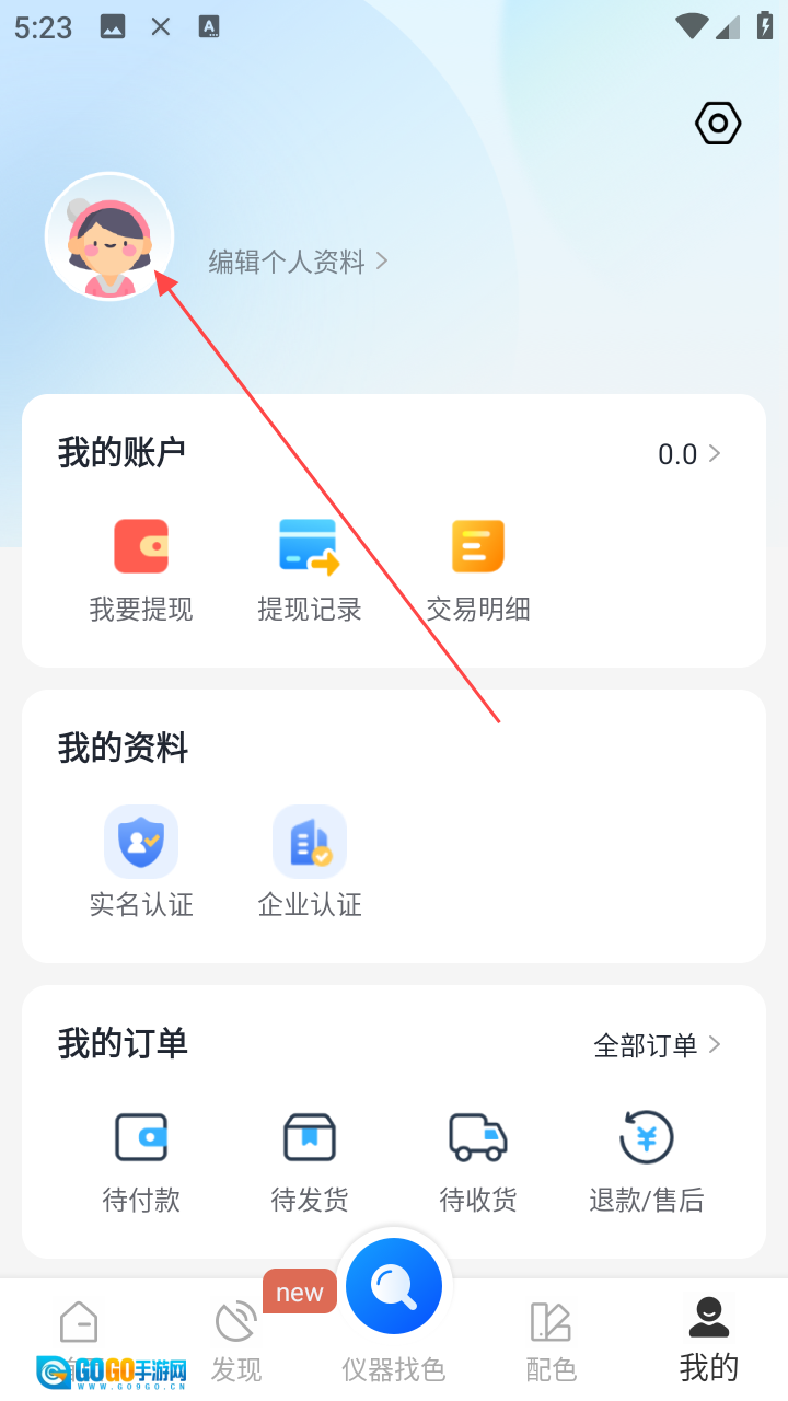 打开驰彩通应用后,在首页点击底部导航栏中的【我的】选项,即可进入个人中心页面。