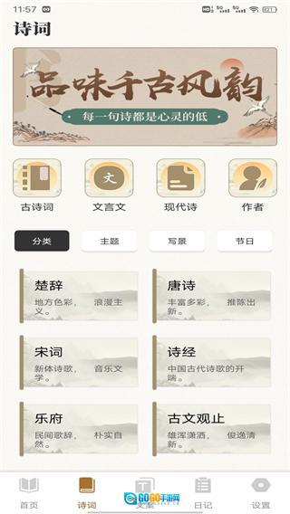 在老白首页,点击底部的诗词选项,进入诗词页面。