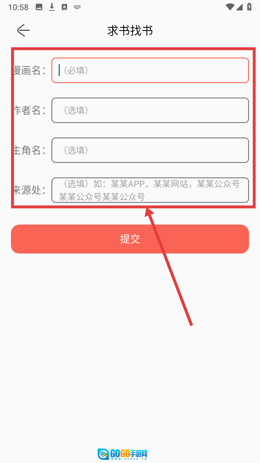 请按要求填写【漫画名、作者名等相关信息】,然后准备提交求书申请。