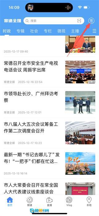 在常德全媒的首页,点击右上角的登录按钮,即可进入登录页面。