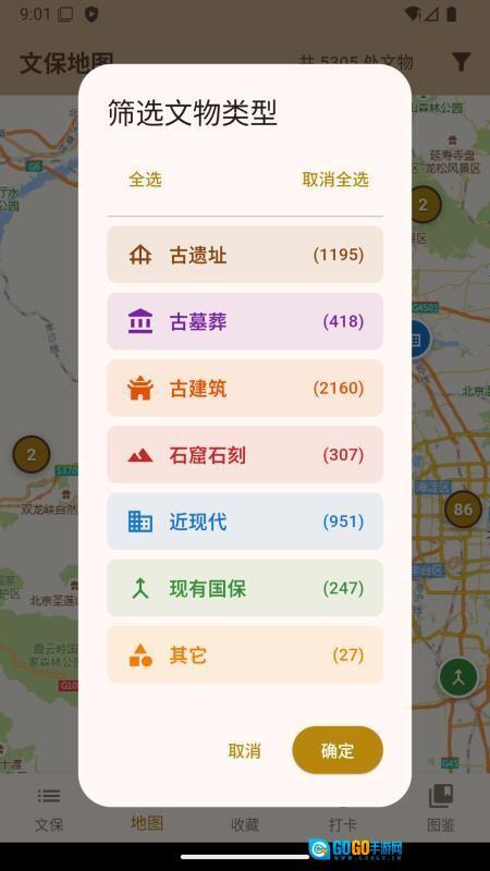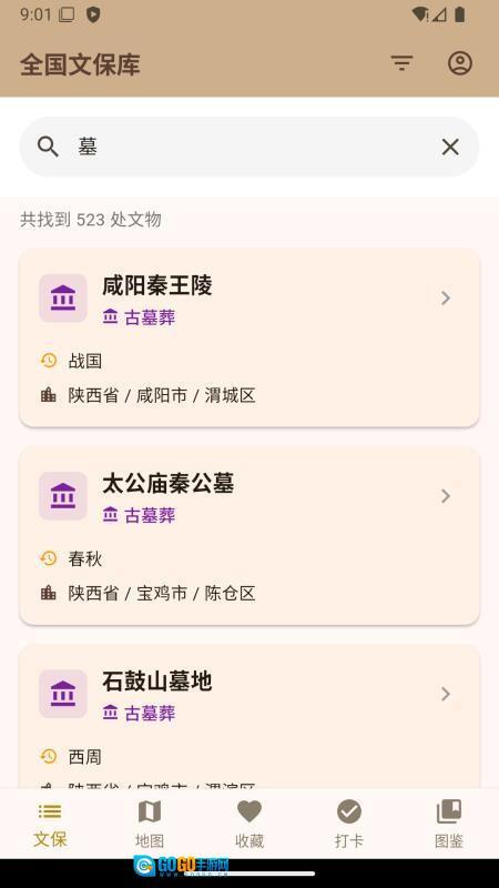 支持文物探索与图鉴收集功能,用户可借助定位或手动搜索功能,发现周边的文物点,进而收集完整的文物图鉴,构建个人资料库。
