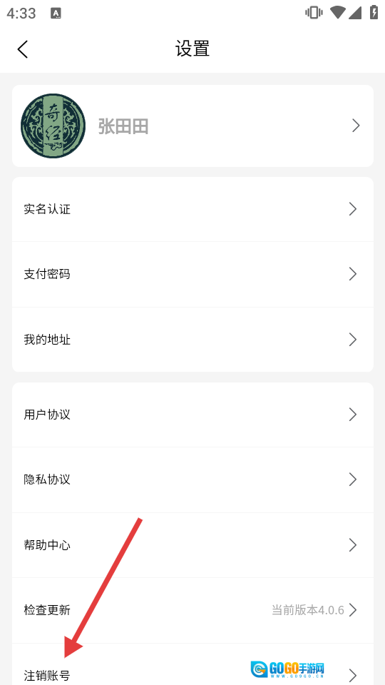 在设置页选择【注销账号】,点击进入下一步。