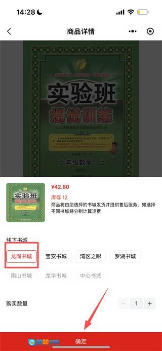 在规格页面选定线下书城并点击确定后,即可进入确认订单页面。