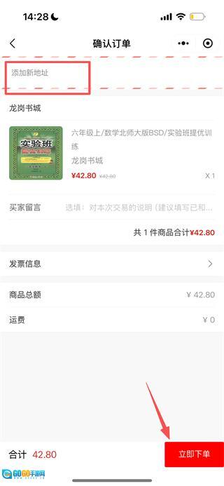 在订单页面添加收货地址,接着点击立即下单,就能完成购书流程。