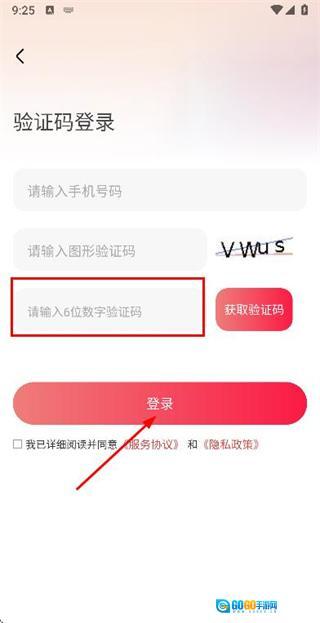 在验证码输入框内填入收到的验证码,接着点击登录按钮,以此完成账号的登录流程。