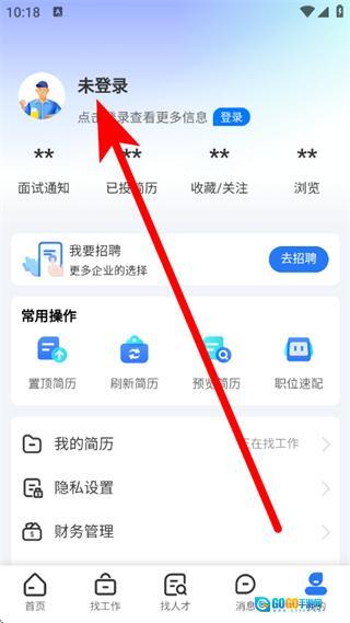 打开临时工网,点击底部我的,进入个人页面。