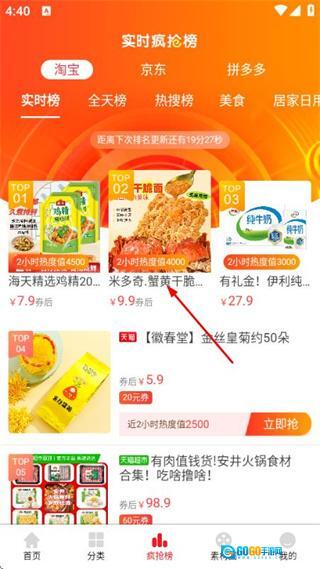 在这个首页点击底部的疯抢榜选项,就能进入实时疯抢榜页面。