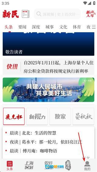 在新民首页,点击底部的“我的”选项,即可进入个人中心页面。