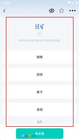 在学习页面上,依据给出的彝语词汇,挑选与之对应的中文解释,以此完成该题的学习任务。