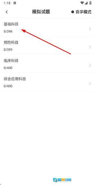 在基础科目模拟试题的列表页面,点击你想要查看的选项,就能进入该试题对应的题目页面。