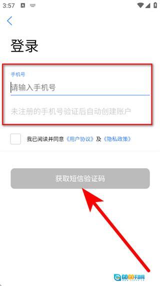 在登录页面完成手机号输入与协议勾选后,点击“获取短信验证码”。