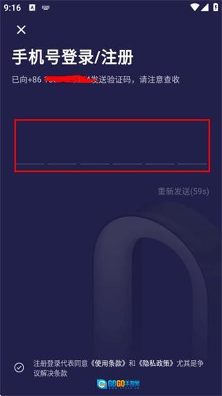 在验证码输入框中填入收到的验证码,点击登录按钮即可完成账号登录流程。