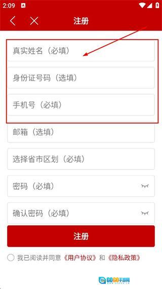 填写省市区划、密码及确认密码,点击注册按钮,即可完成账号注册流程。