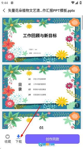 在PPT模板库页面点击目标模板,即可进入该模板的详情页面。