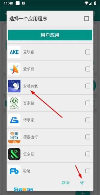 在选择应用程序的窗口里勾选想要添加的目标应用后,点击“好”按钮就能完成添加步骤。