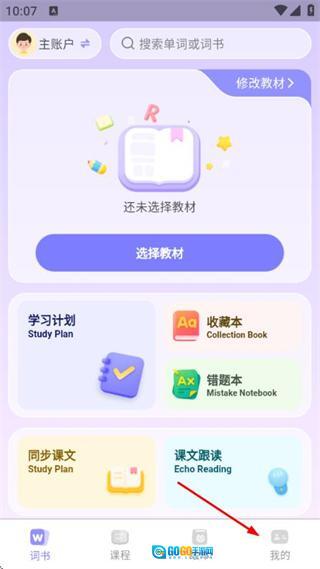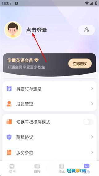 在词书页面点击底部我的,进入个人中心页面。