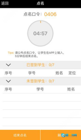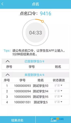 老师宣布点名口令后,同学们请在自己的端点页面输入口令完成签到,点名将在5分钟后自动结束。