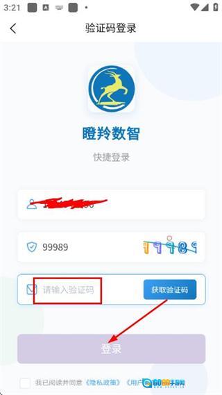 在验证码输入框中填入收到的验证码,然后点击登录按钮,即可完成账号登录流程。