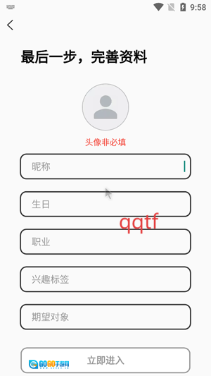 在个人资料页面补充完整相关信息,点击保存按钮,即可完成注册流程。