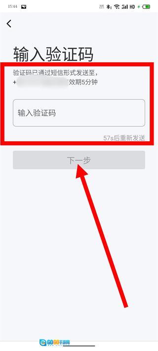 在验证码输入页面,把收到的验证码填写到对应的输入框中,接着点击“下一步”按钮,这样就能完成注册流程了。