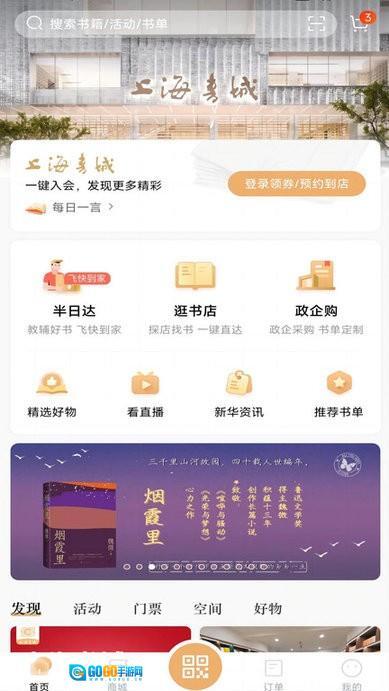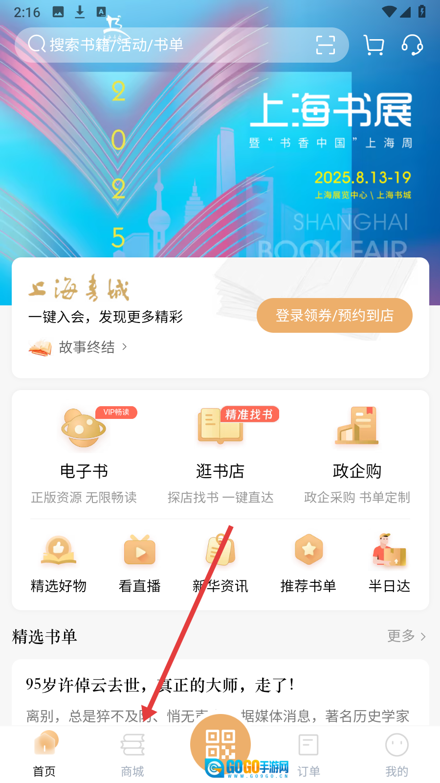打开上海书城后,点击页面底部的【商城】选项,即可进入线上书城挑选并购买图书商品。