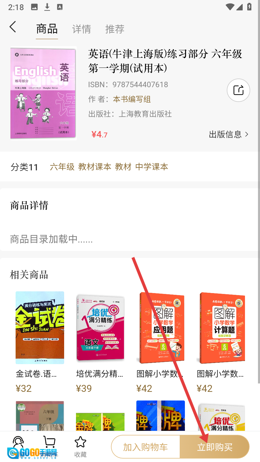 进入教材详情页面后,点击【立即购买】按钮,就能完成书籍的购买流程。