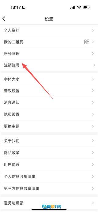 在设置页面中,找到并点击“注销账号”选项,即可进入注销账号的页面。