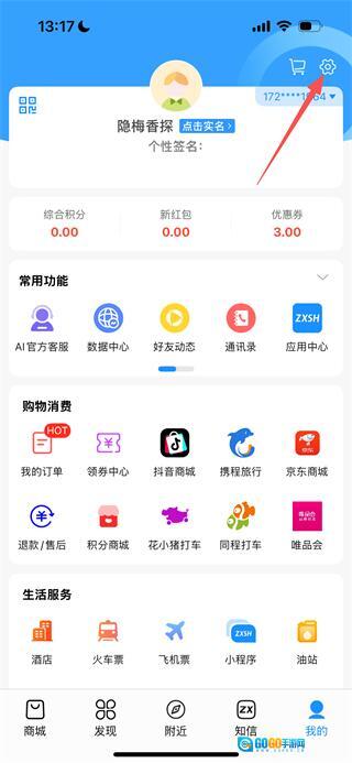 在个人中心页面,点击右上角的设置图标,进入设置页。