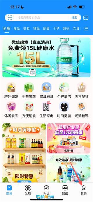 在知信生活的首页,点击页面底部的“我的”选项,即可进入个人中心页面。