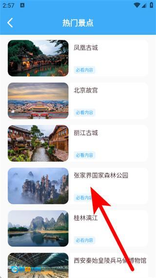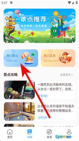 在攻略页面,点击热门景点板块,进入热门景点列表页面。