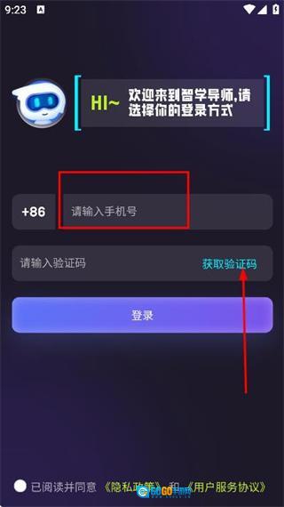 在手机登录界面输入手机号,勾选相关协议后,点击获取验证码按钮。