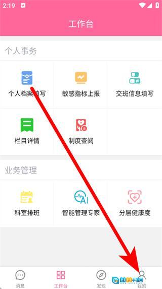 打开护理助手,点击底部我的,进入我的页面。