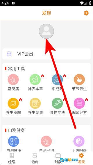 打开经络养生,点击底部的发现,进入发现页面。