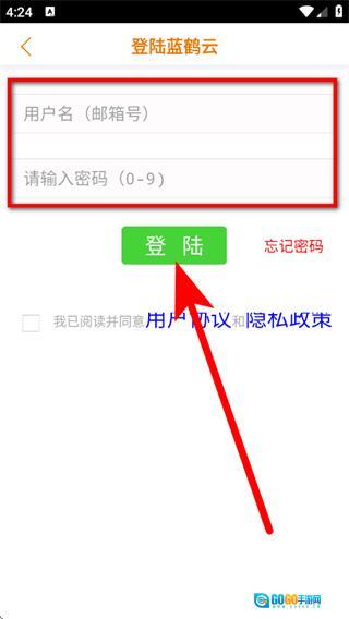 在登陆蓝鹤云页,点击邮箱登录,进入登录页面。