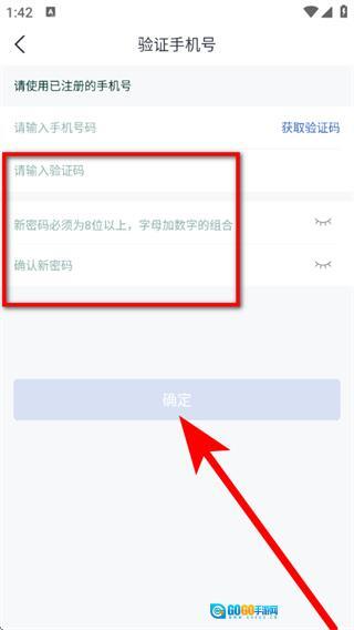 在输入验证码、设置并确认新密码后,点击确定按钮,即可完成密码重置操作。