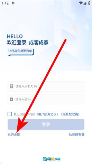 打开成客成家,在登录页面,点击密码登录。