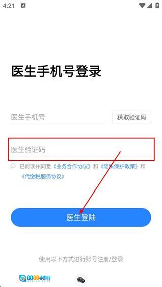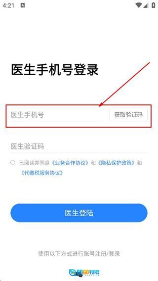 在医生手机号登录界面,输入医生的手机号码后,点击“获取短信验证码”按钮。