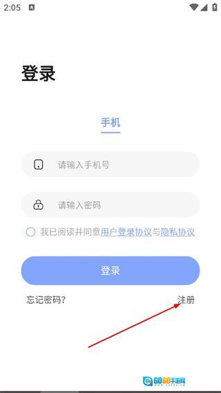 在注册界面,输入手机号码,点击获取验证码按钮后,再填写收到的验证码。