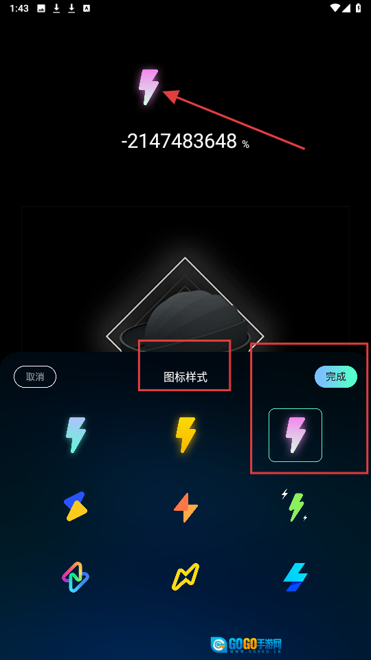 在设置页面中,你可以点击【图标样式】选项来挑选心仪的充电图标样式,选好后点击【完成】按钮即可确认设置。