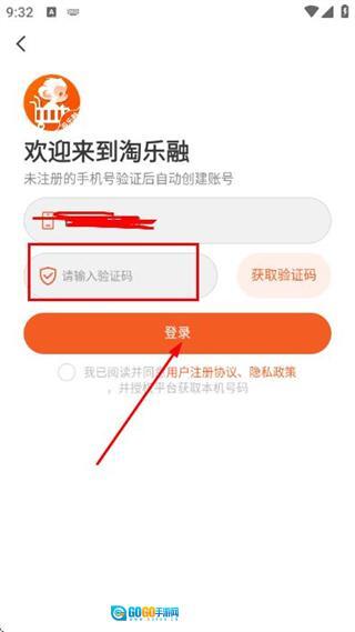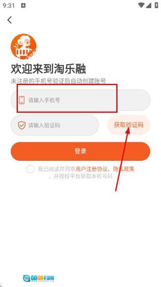 在手机验证登录界面输入手机号,勾选相关协议,接着点击获取验证码按钮。